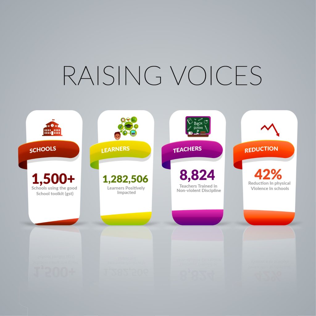 Raising Voices is a Kampala-based non-profit organization that has been working to prevent violence against women and children since 2000. Through its three core program areas—Practice, Learning, and Influencing—the organization develops and implements evidence-based methodologies to prevent violence, grounded in the realities of schools and communities. Scaling of the Good School Toolkit (GST) Raising Voices scaled up the Good School Toolkit (GST), an evidence-based program designed to transform school culture and prevent violence against children with support from the Learning Initiative. The toolkit has been widely adopted across Uganda’s primary and secondary schools, with the initiative reinforcing the use of positive, respectful interactions in educational settings. .